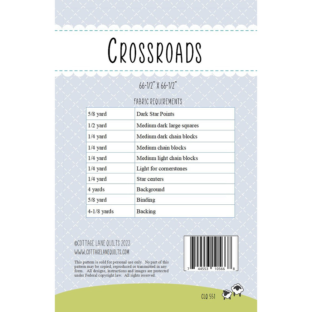 The Crossroads quilt pattern, designed by Cheran Bee, is a beautiful and intricate design that will add a touch of elegance to any room. The pattern features a stunning combination of squares and triangles that come together to create a stunning, geometric design. Made with high-quality fabrics, this quilt will last for years to come and make a great addition to any collection. Whether you're a seasoned quilter or just starting out, the Crossroads pattern is sure to impress. So why wait? Order your Crossroads quilt pattern today and start creating something truly special.