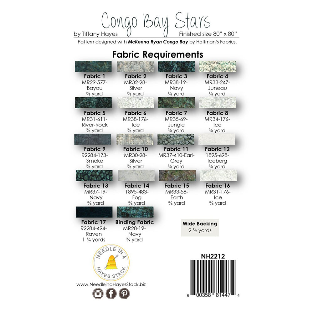 With deep contrast and stunning fabrics, this quilt will be the star of any space. This quilt is designed featuring Congo Bay by McKenna Ryan for Hoffman Fabrics. Quilt finishes at 80" x 80".