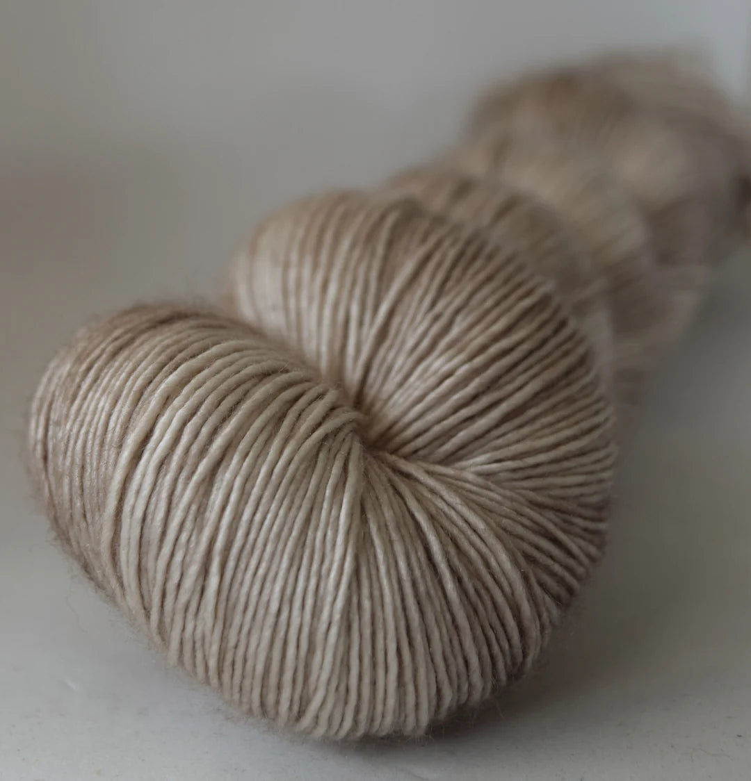 With the yarn being 70% Merino/ 30% Silk (Singly ply), with just the right amount of silk this yarn has drape and sheen that lends luxury to any creation. Single spun yarn is smooth to knit up and creates a fabric that is plush and blooms in to a soft, relaxed fabric.